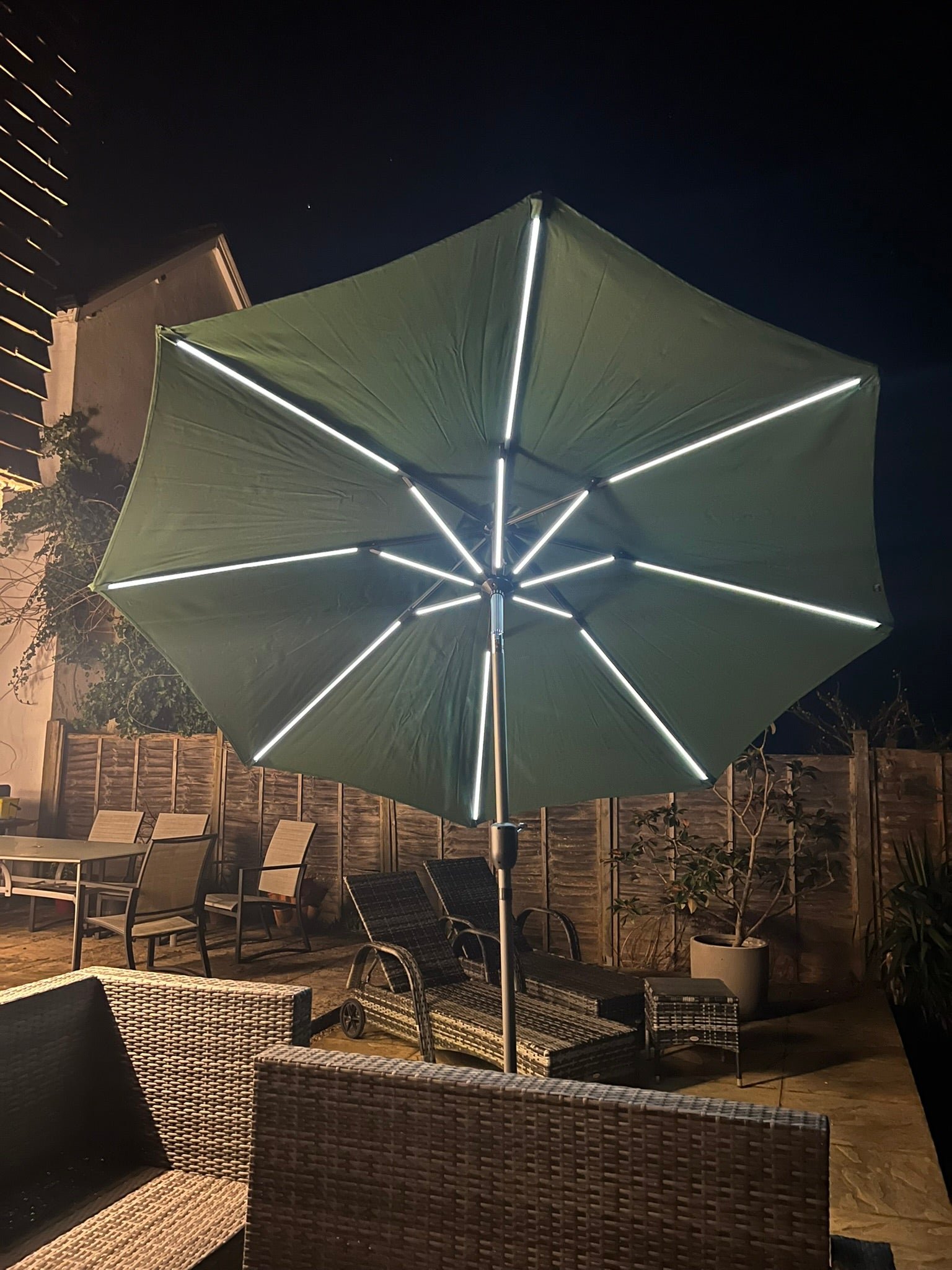 A versatile choice that complements garden furniture beautifully while enhancing both daytime comfort and evening ambience.