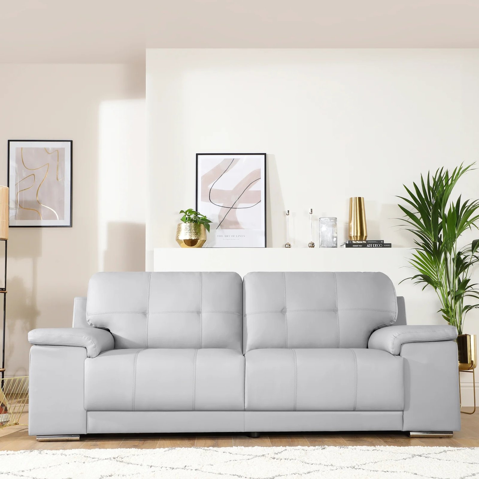 Shannon 3 Seater Sofa, Light Grey Premium Leather